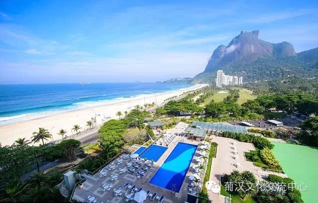 17:00皇家郁金香酒店:下午总理在此行下榻的皇家郁金香酒店会见了里约市长帕埃斯,后者代表全市人民向总理授予里约的城市钥匙。即便是在高档酒店林立的知名旅游城市里约,这座酒店也数一数二,其最大优势是绝佳的地段和无与伦比的风景:面朝适宜冲浪的宽阔沙滩,背后则是造型奇特的险峰,出门步行没多久就能看到一座巨大的草坪,是三角翼飞行器的着陆点(参见《里约大冒险》里两只鹦鹉俯瞰全城的桥段)。前些年世界杯赛筹办期间,国际足联曾多次在此举办新闻发布会,档次可见一斑。